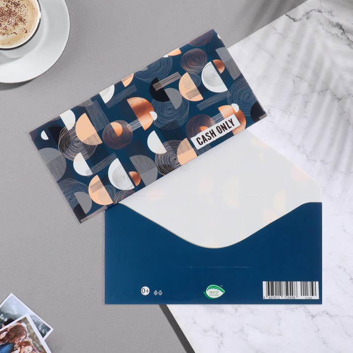 Конверт для денег "Cash only" синий фон, 17х8 см