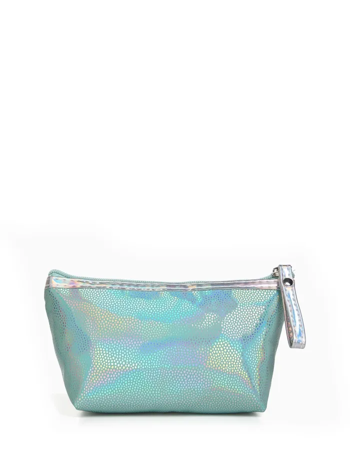 Косметичка простая на молнии, с ручкой, подкладом, голографическая, зелёная