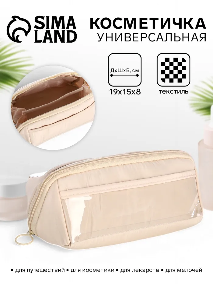 Косметичка на молнии, маленькая, с отделами, бежевая