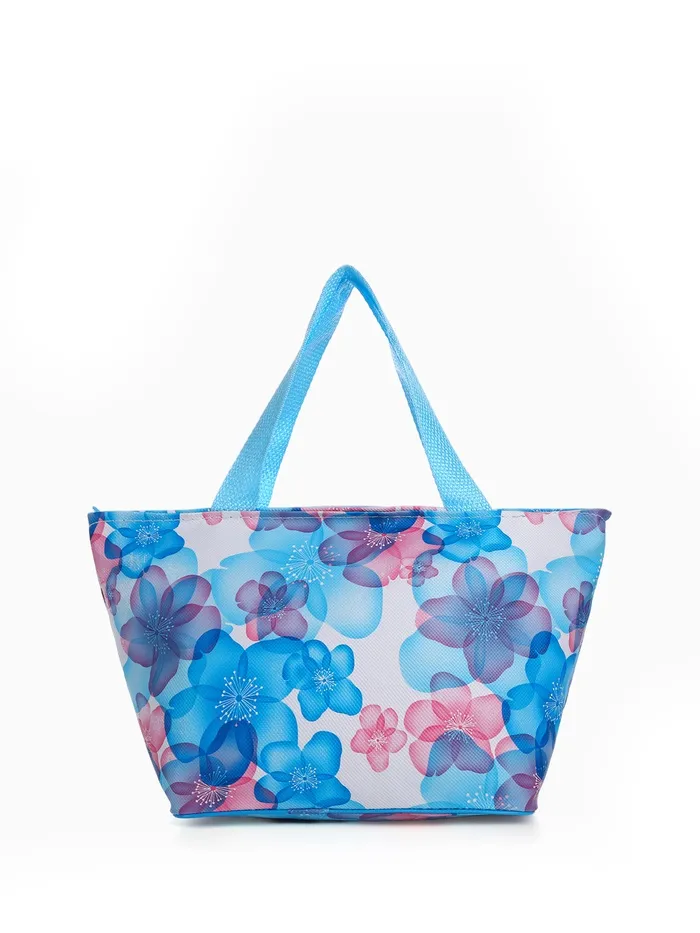 Косметичка простая на молнии, с ручкой, подкладом, с принтом, голубая