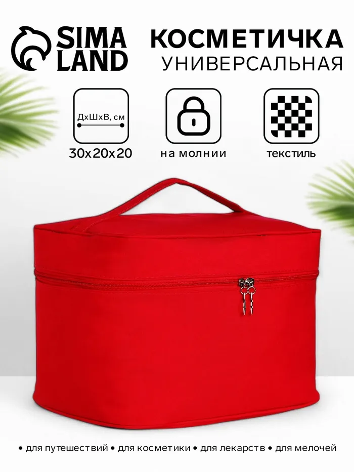 Косметичка-аптечка на молнии, на подкладке, с ручкой, красная