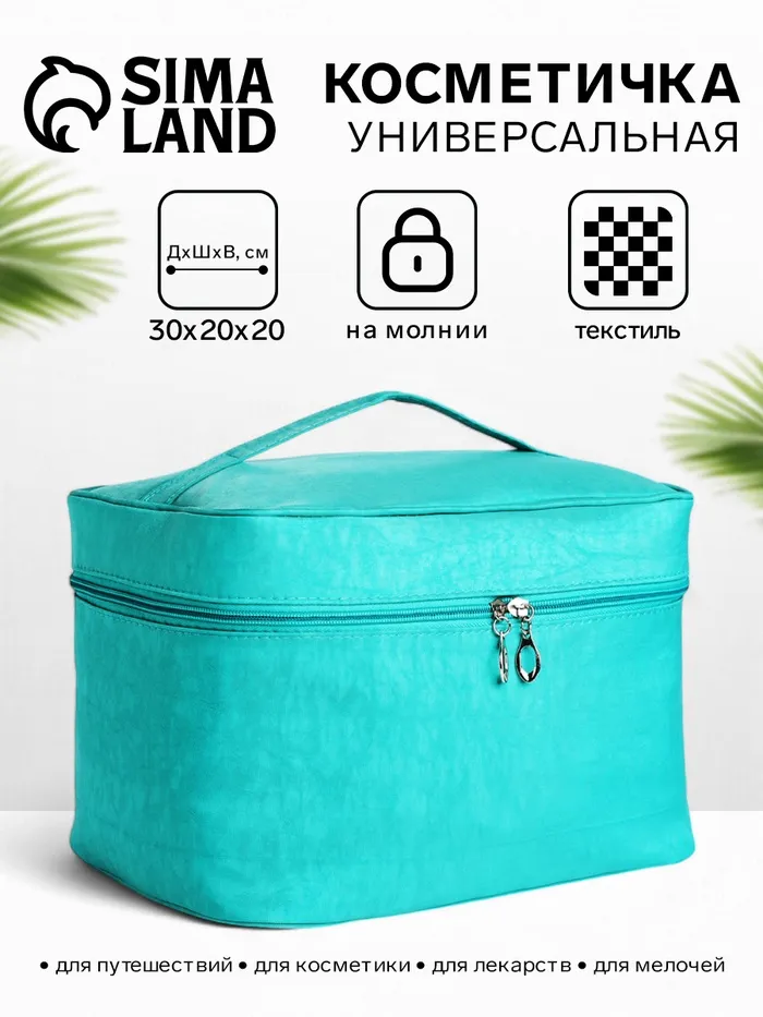 Косметичка-сундучок на молнии, на подкладке, с ручкой, бирюзовая