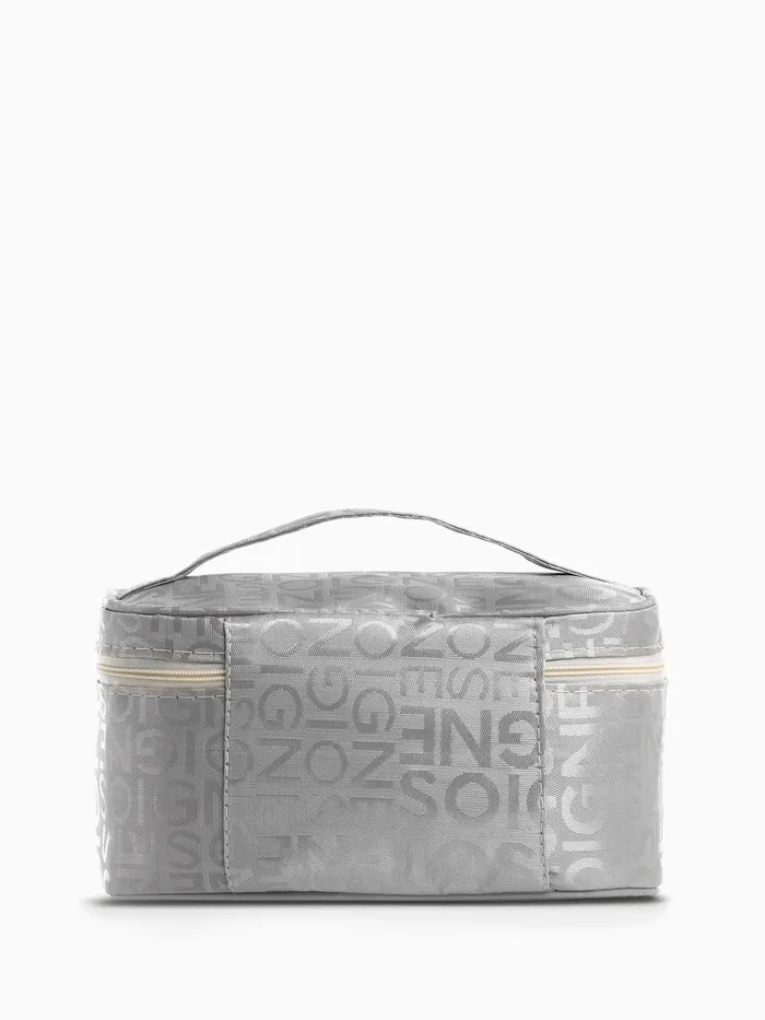 Косметичка-сундучок на молнии, на подкладке, с ручкой, зеркалом, серая
