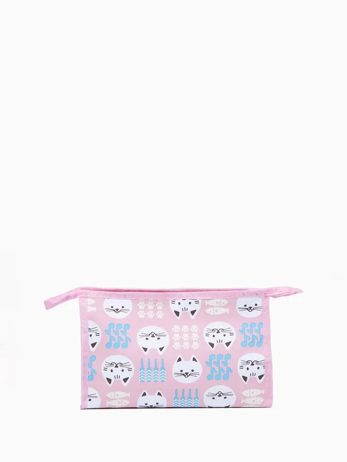 Косметичка на молнии, треугольная, маленькая, с рисунком, розовая