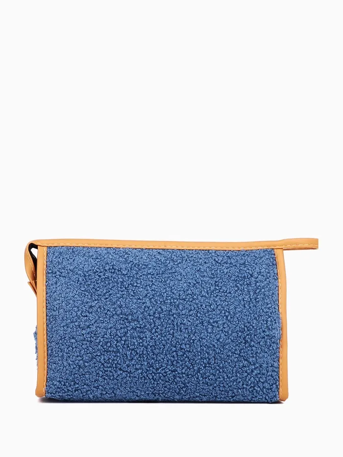 Косметичка на молнии, треугольная, плюшевая, синяя