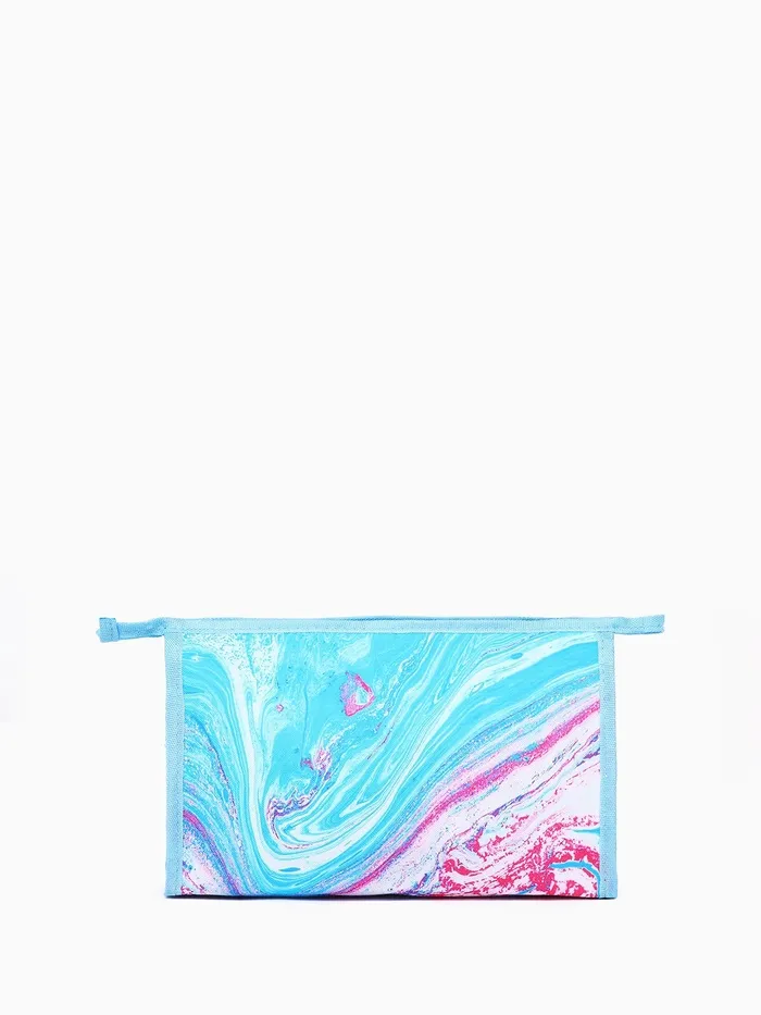 Косметичка на молнии, треугольная, маленькая, с принтом, голубая