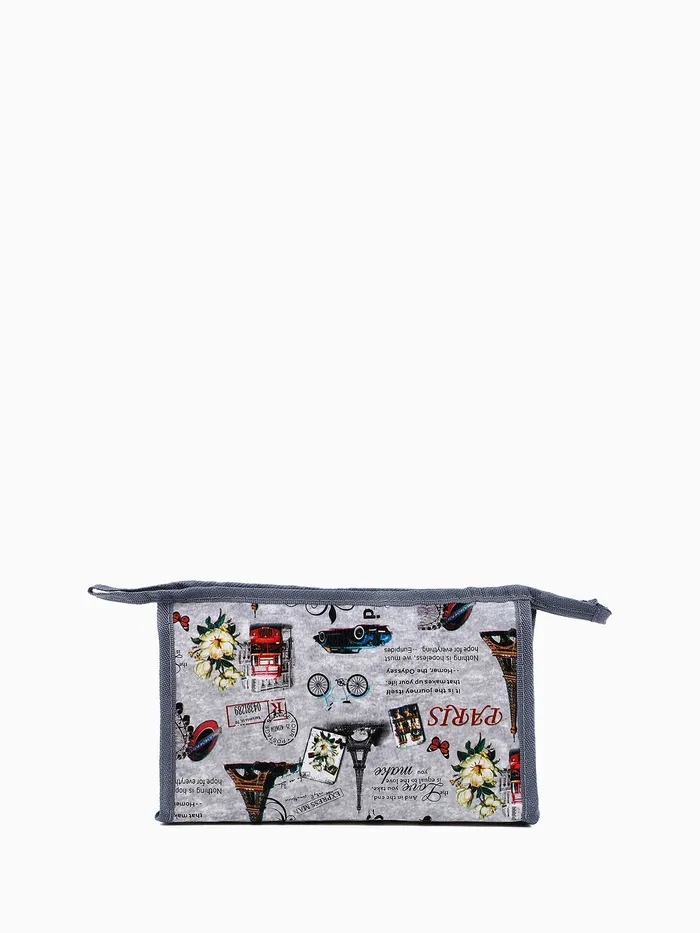Косметичка на молнии, треугольная, с рисунком, серая
