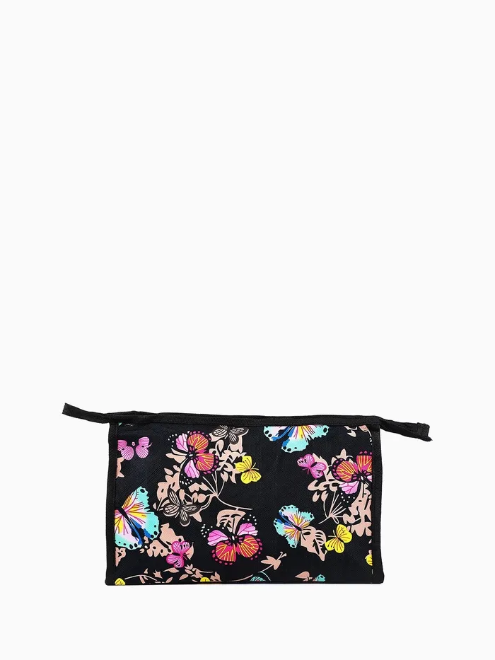 Косметичка на молнии, треугольная, большая, с рисунком, чёрная