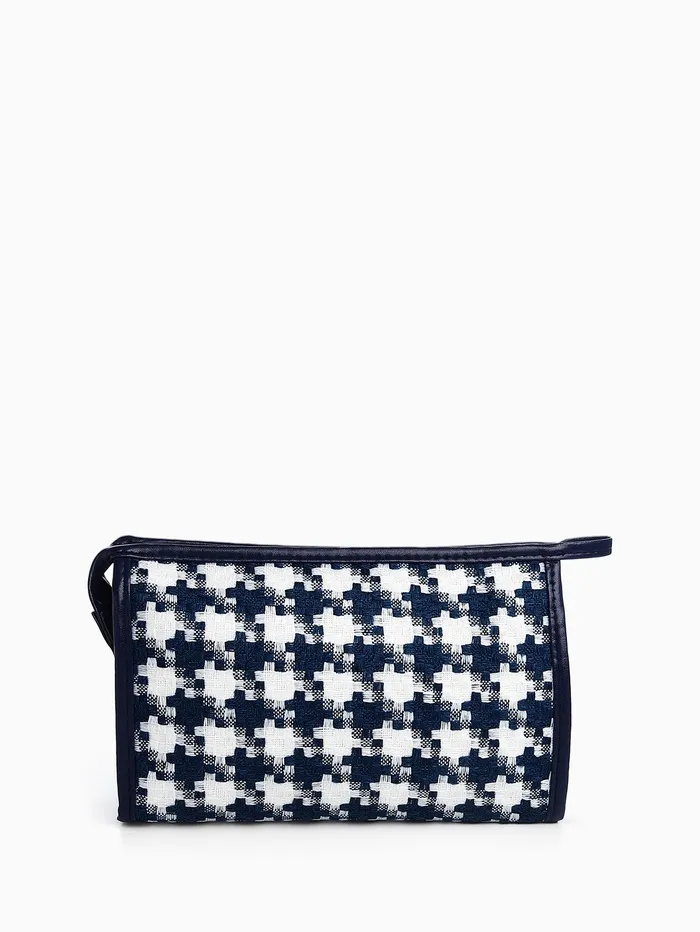 Косметичка на молнии, треугольная, с паттерном «Гусиная лапка», синяя