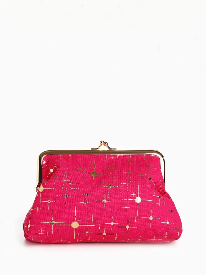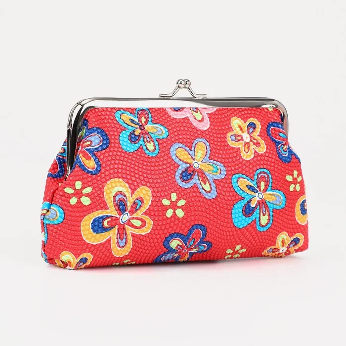 Косметичка женская на фермуаре, маленькая, с принтом, малиновая