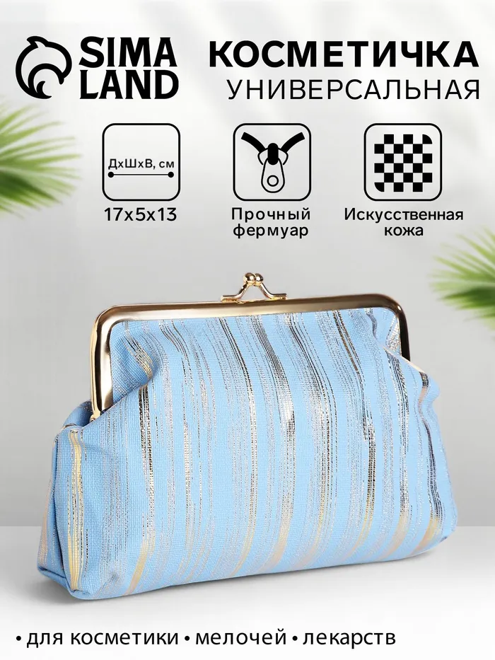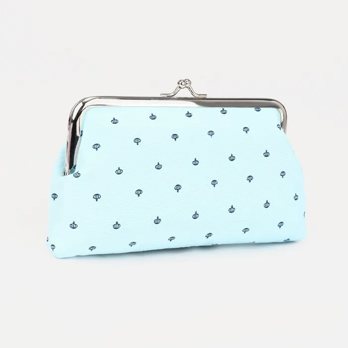 Косметичка женская на фермуаре, маленькая, с принтом, голубой