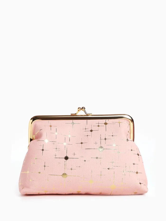 Косметичка женская на фермуаре, маленькая, с принтом, розовый