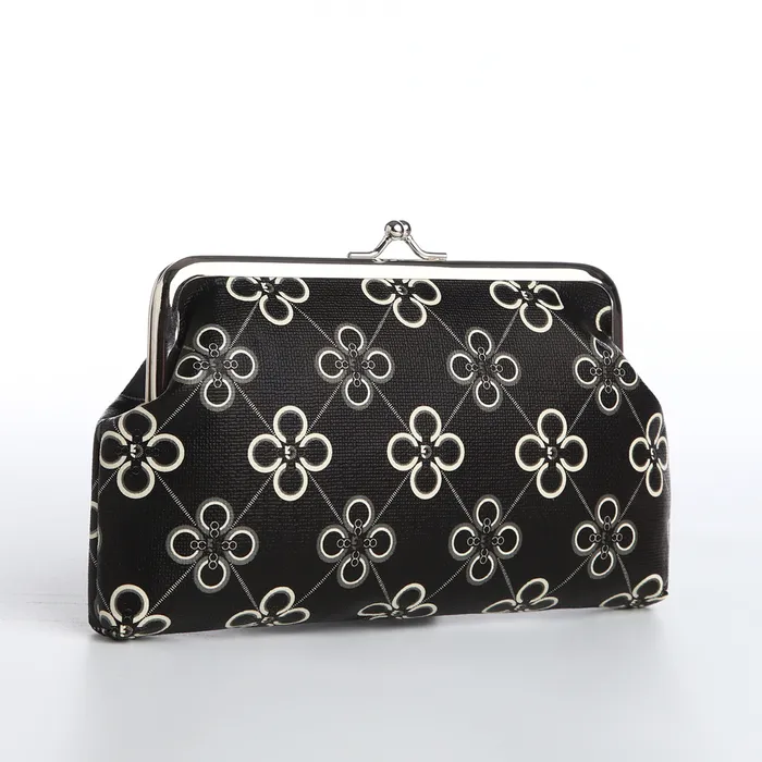 Косметичка женская на фермуаре, маленькая, с принтом, чёрная