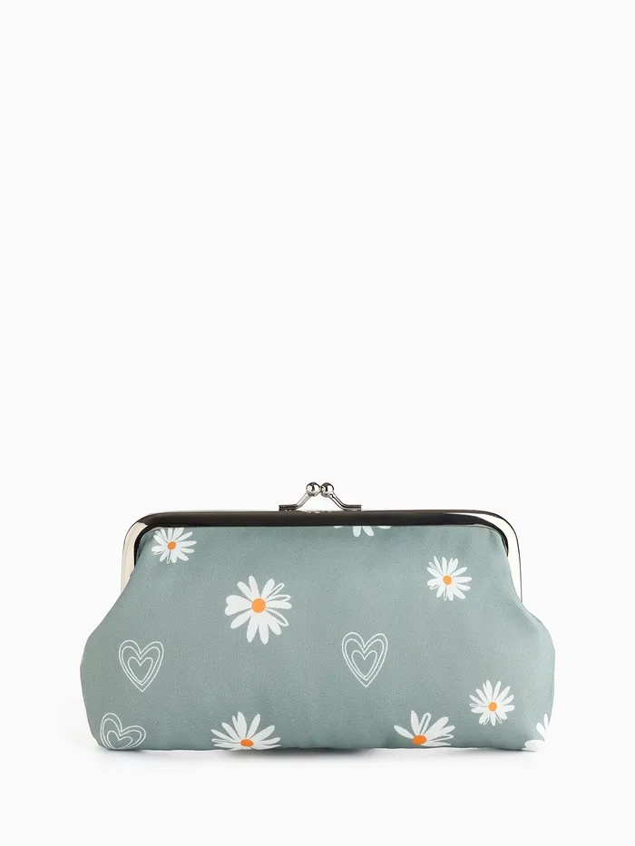 Косметичка женская на фермуаре, маленькая, с принтом «Ромашки», розовый