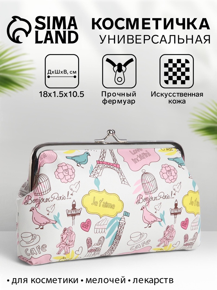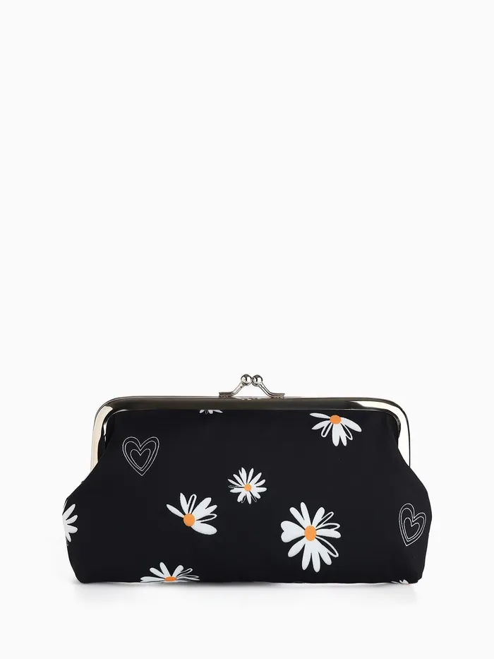 Косметичка женская на фермуаре, маленькая, с принтом, чёрный