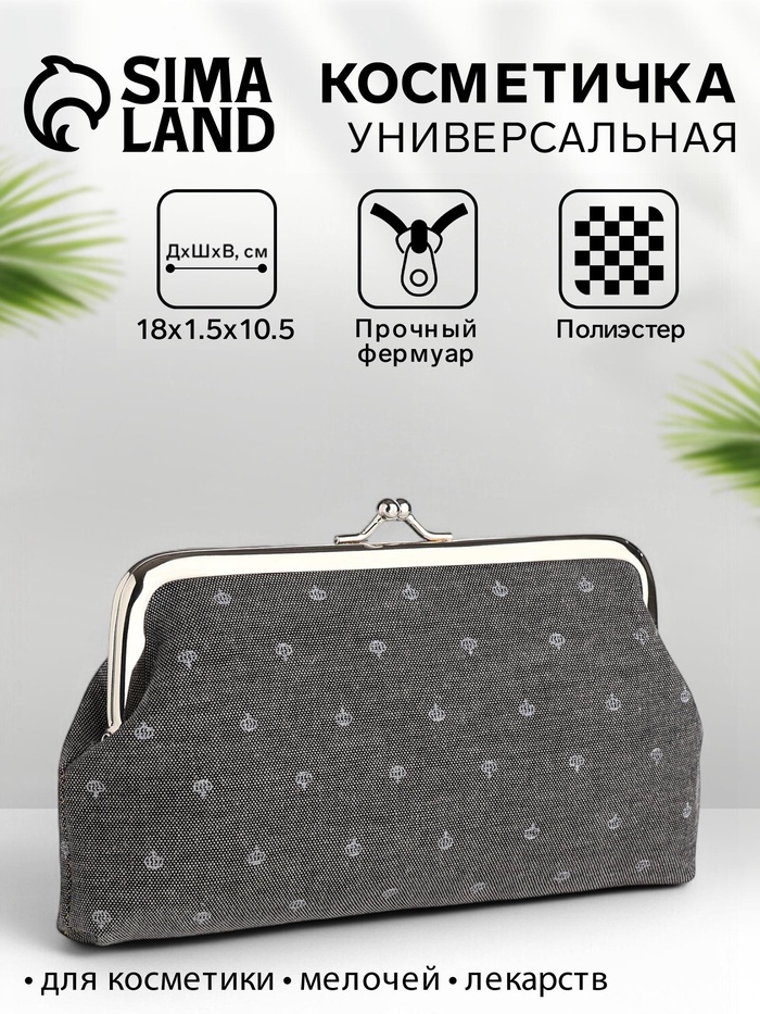 Косметичка женская на фермуаре, маленькая, с принтом «Корона», серая
