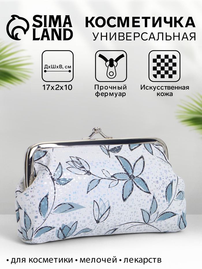 Косметичка женская на фермуаре, маленькая, с принтом «Весенний цветок», серая