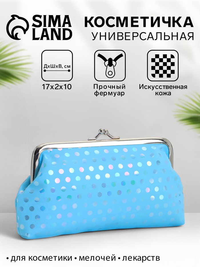 Косметичка женская на фермуаре, маленькая, с принтом «Перламутровый горох», голубая