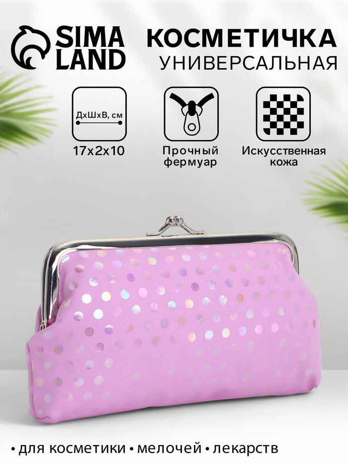 Косметичка женская на фермуаре, маленькая, с принтом «Перламутровый горох», розовый