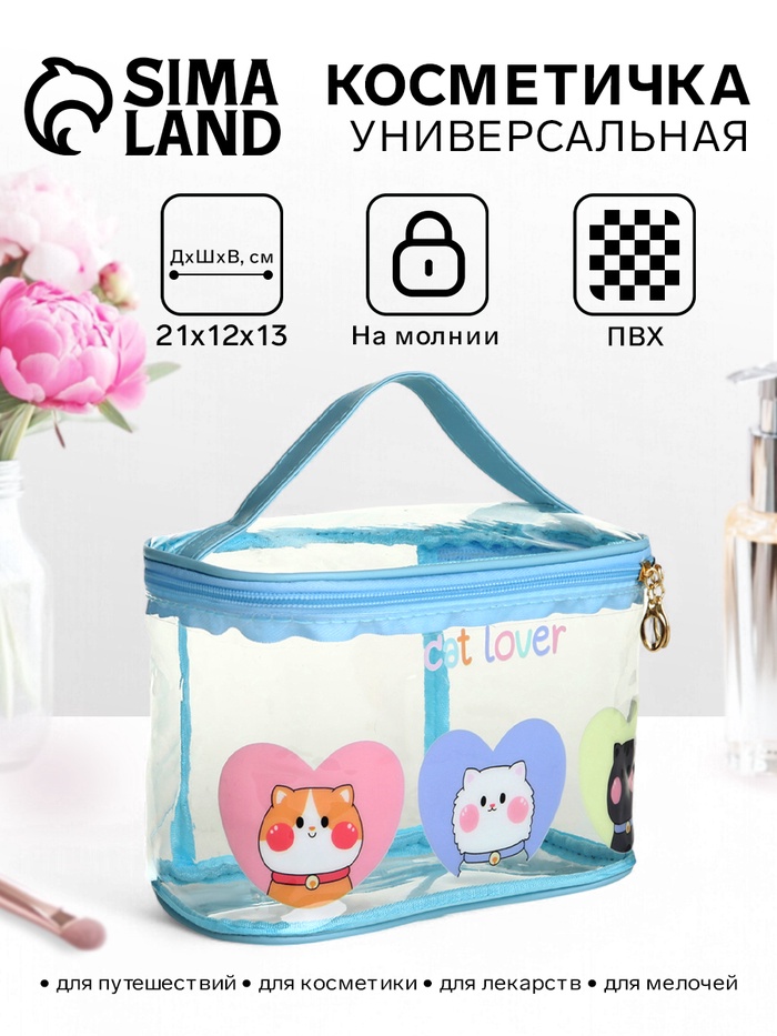 Косметичка на молнии для бассейна, с ручкой, с принтом Cat lover, голубой