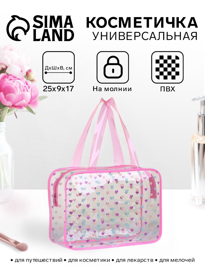 Косметичка на молнии для бассейна, с ручками, с принтом «Сердечки», розовый