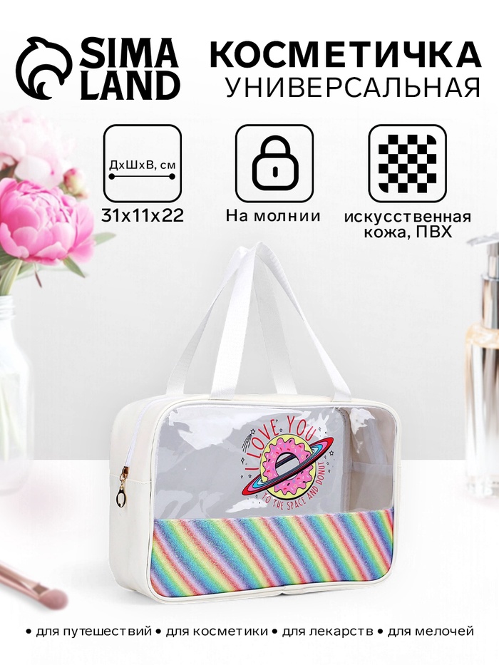 Косметичка на молнии для бассейна, большая, с ручками, с принтом «Пончик», белый