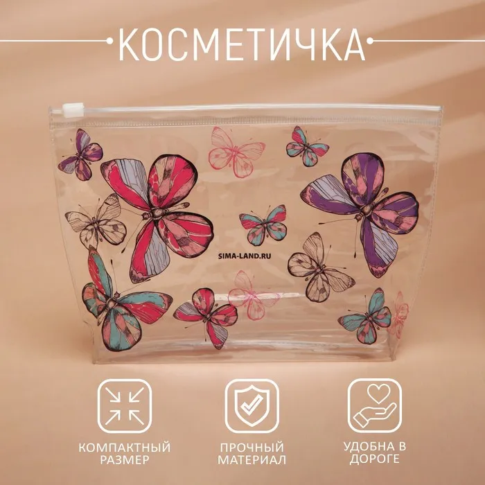 Косметичка из прозрачного PVC 21 х2 х14 см «Бабочки»