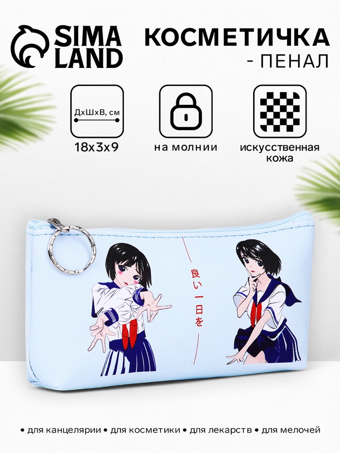 Косметичка-пенал на молнии, с рисунком «Аниме», голубая