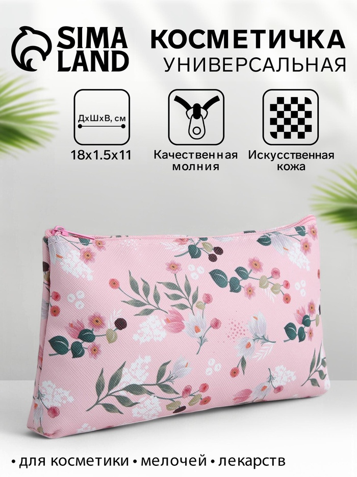 Косметичка-пенал на молнии, плоская, с рисунком «Подснежник», розовая