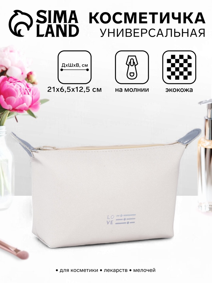 Косметичка на молнии простая, маленькая, с рисунком, бежевая