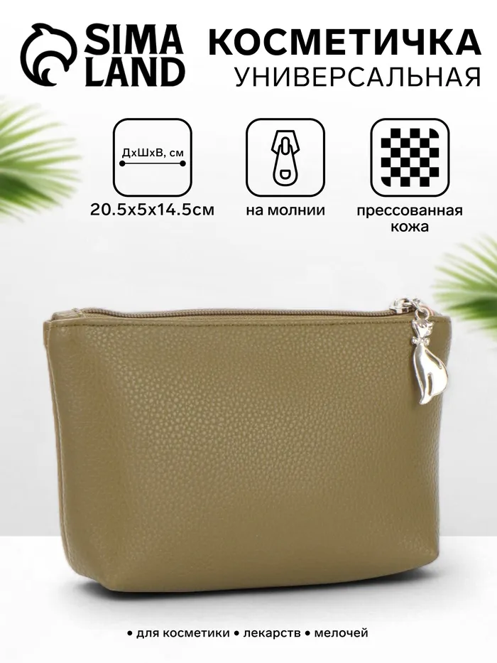 Косметичка-пенал на молнии, плоская, маленькая, хаки