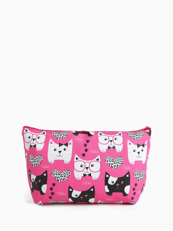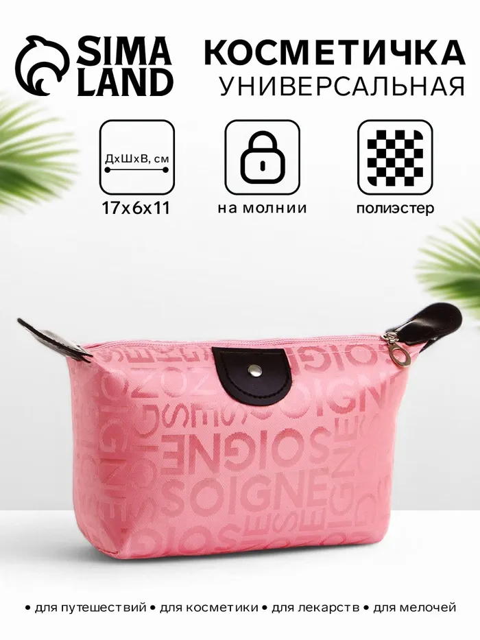 Косметичка на молнии простая, маленькая, с рисунком, розовая