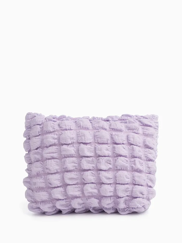Косметичка на молнии простая, большая, мягкая, сиреневая