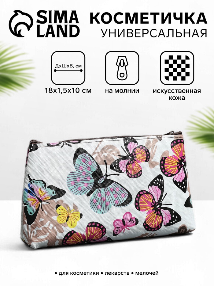 Косметичка-пенал на молнии, плоская, с принтом, белая/разноцветная