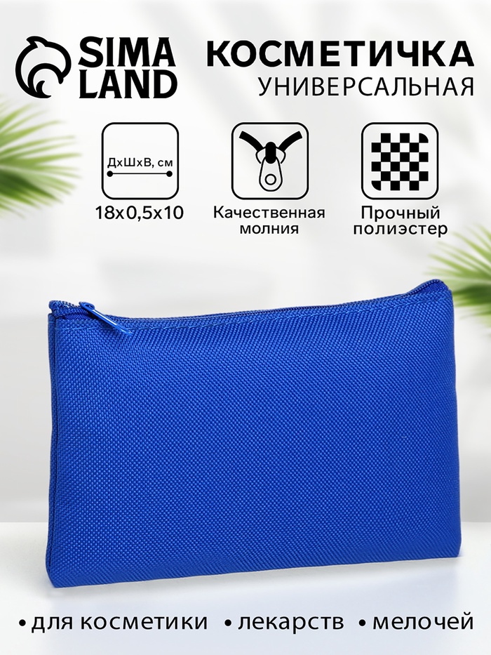 Косметичка-пенал на молнии, плоская, маленькая, синяя