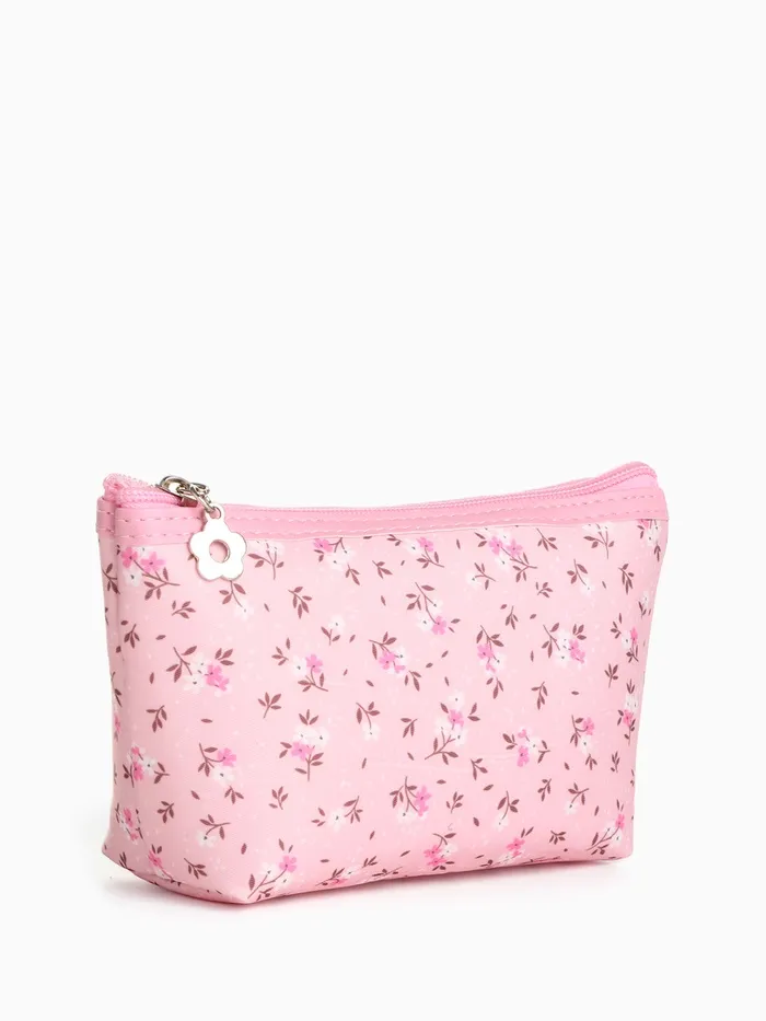 Набор простых косметичек на молниях 2 в 1, с принтом, нежно-розовый