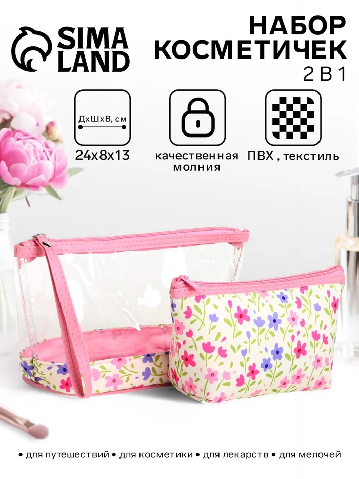 Набор косметичек 2 в 1 на молнии, цвет розовый