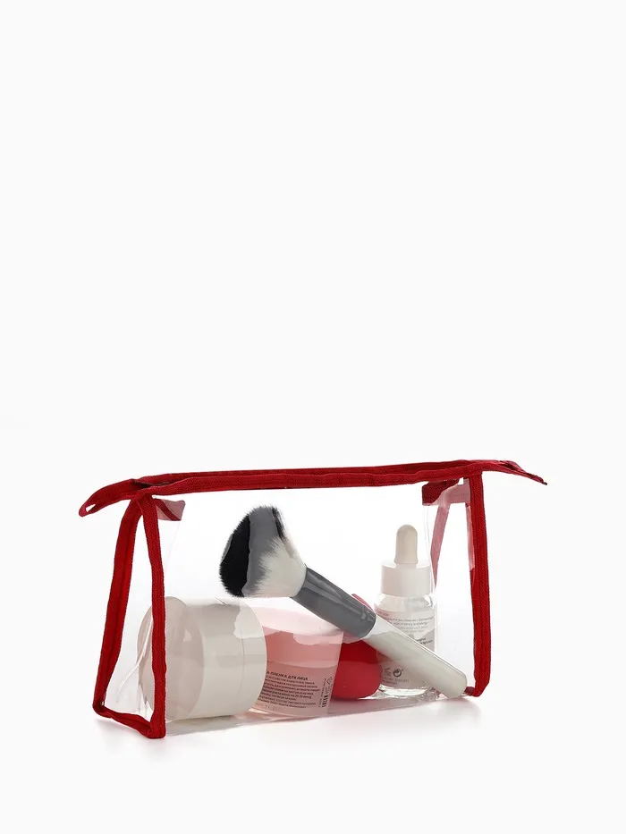 Набор простых косметичек на молниях 2 в 1, с надписями, красный