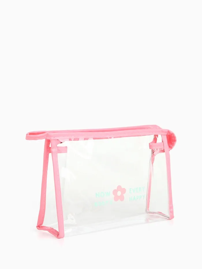 Набор простых косметичек на молниях 3 в 1, с принтом, коралловый