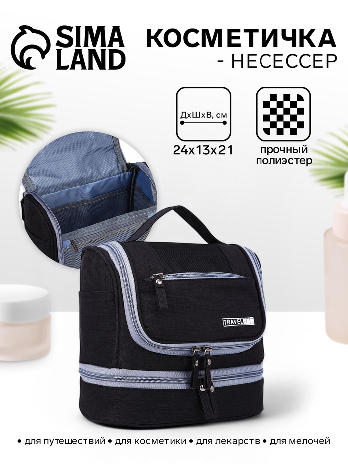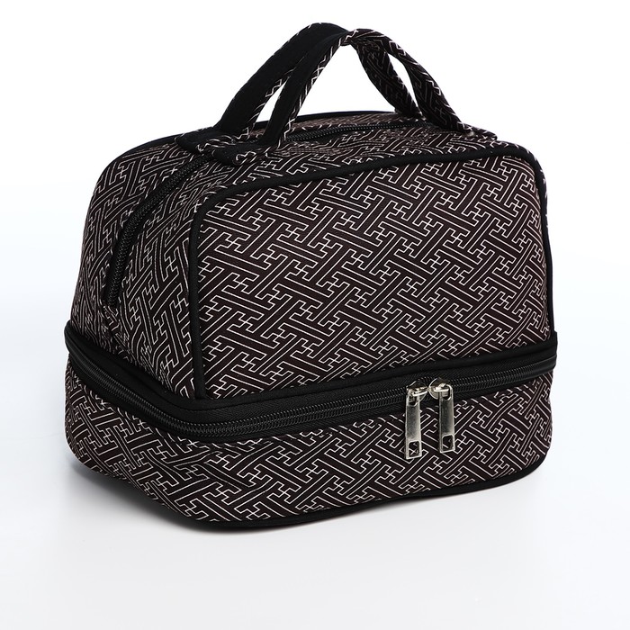 Косметичка, 2 отдела на молниях, с ручками, цвет чёрный