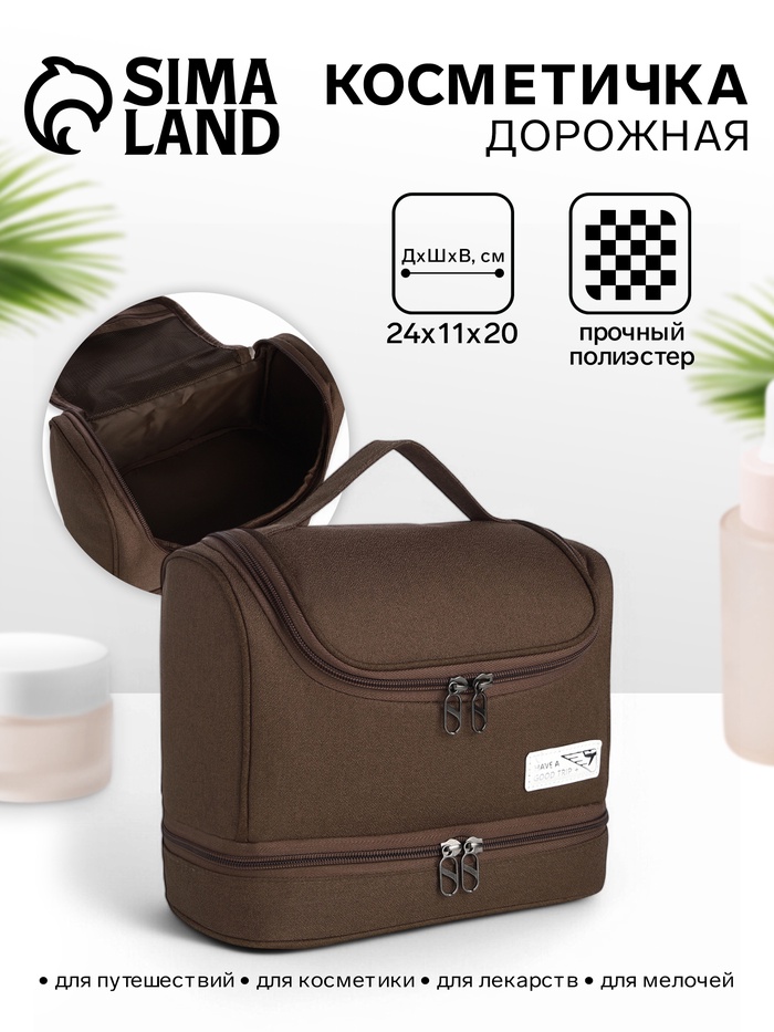 Косметичка - несессер дорожная на молнии, с ручкой, с отделами, коричневая