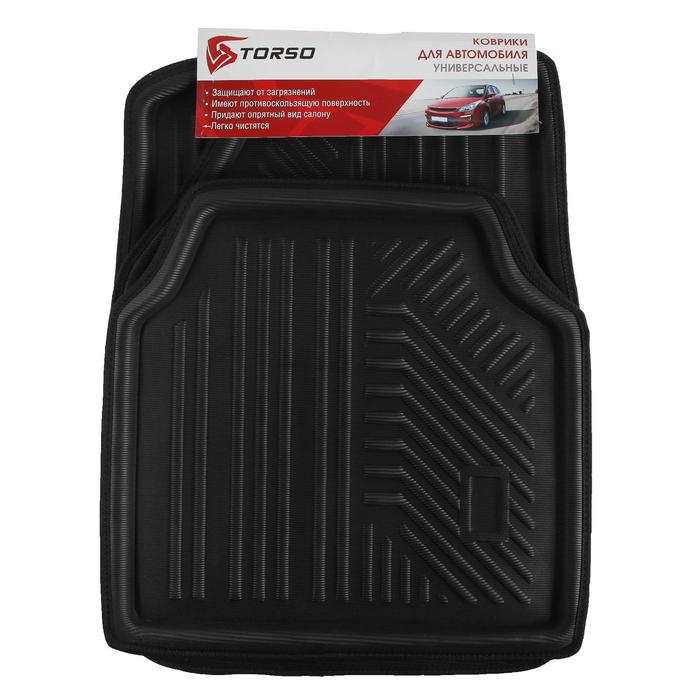 Коврики автомобильные TORSO, резина, 70х48 см, 50х48 см, черный, набор 4 шт