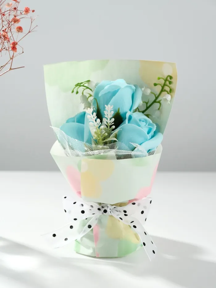 Букет из мыльных лепестков для ванны «Розы в подарочной коробке», голубой, 7.5×13.8×20.5 см