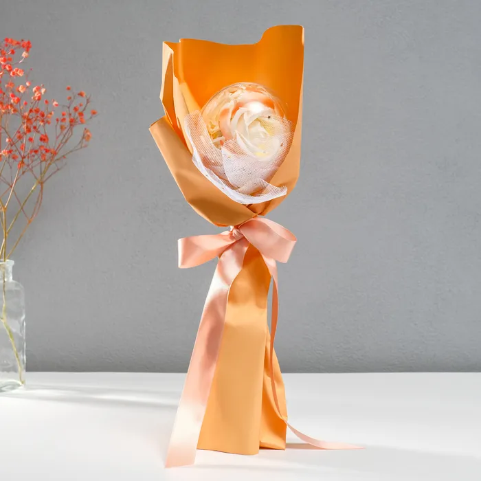 Букет из мыльных лепестков для ванны «Роза в шарике», подарочный, оранжевый, 8.5×8.5×36 см