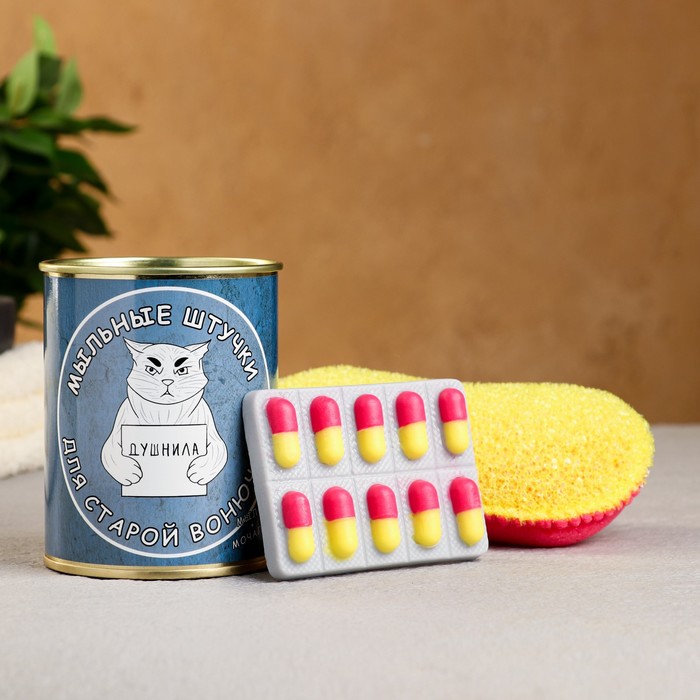 Подарочный набор в консервной банке «Мыльные штучки». мыло для рук, мочалка