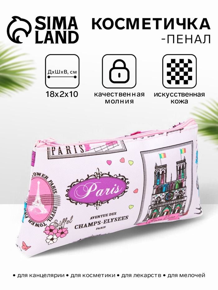 Косметичка-пенал на молнии, плоская, с рисунком «Романтика Парижа», розовая