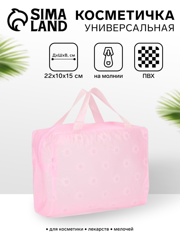 Косметичка на молнии, с ручками, розовая