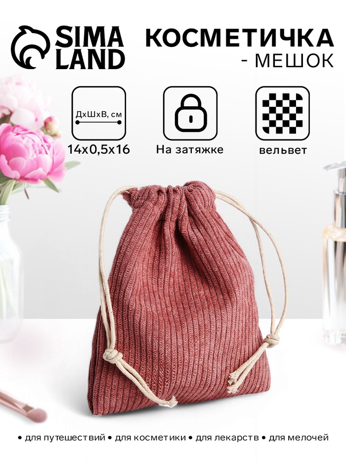 Косметичка-мешок с завязками, розовая