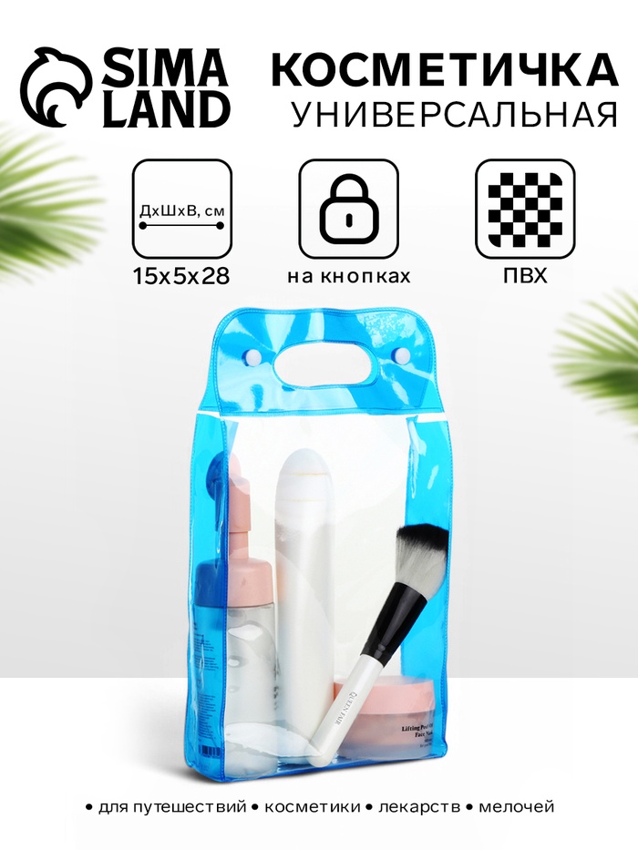 Косметичка на кнопках для бассейна, с ручками, прозрачный/голубой