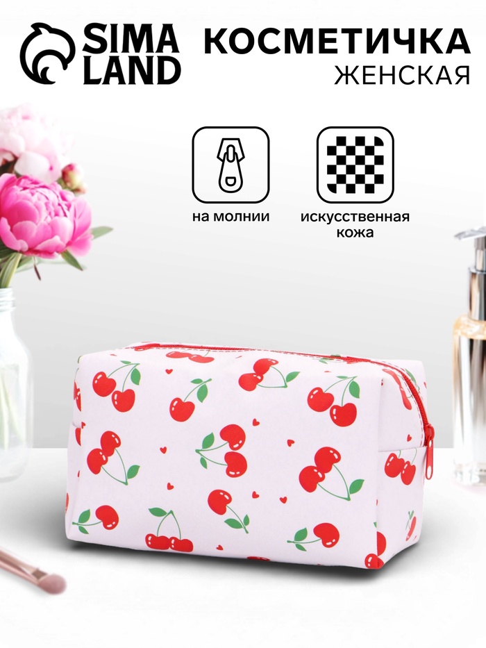 Косметичка женская «Вишенки», на молнии, с рисунком, белая